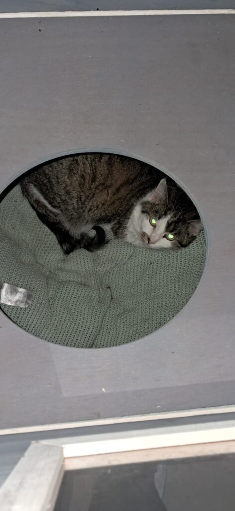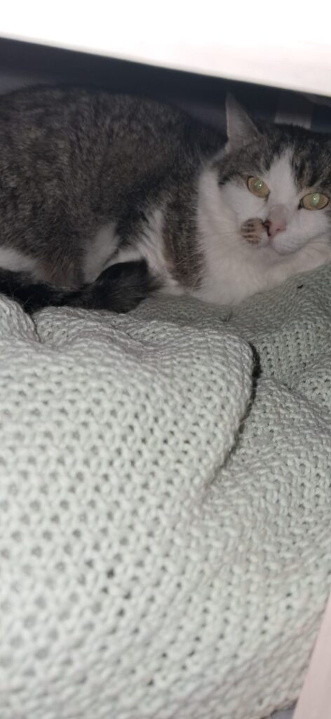 Tilda, weiblich, geboren ca. 2017, ist eine sehr scheue Freigängerkatze und vermutlich eine ehemalige Streunerin. Sie kam schwer verletzt in die Klinik und anschließend zu uns, wo sie nun sicher versorgt wird.